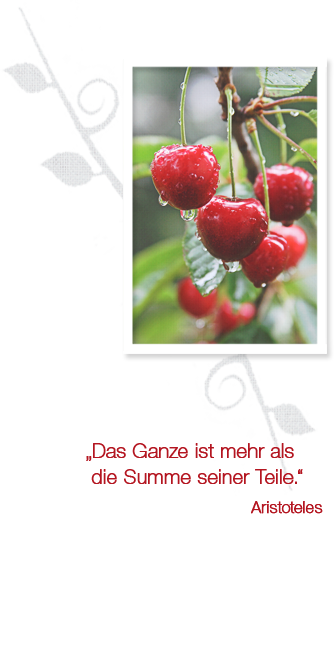Darüber hinaus bin ich persönlich aufgeschlossen für den ganzheitlichen Anspruch der modernen Vollwerternährung der Gießener Schule. Ebenso beeindrucken mich die Gedanken des Philosophen Rudolf Steiner, der mit seiner Anthroposophie schon 1924 entscheidende Anstöße für die heutige Bio-Bewegung gegeben hat.